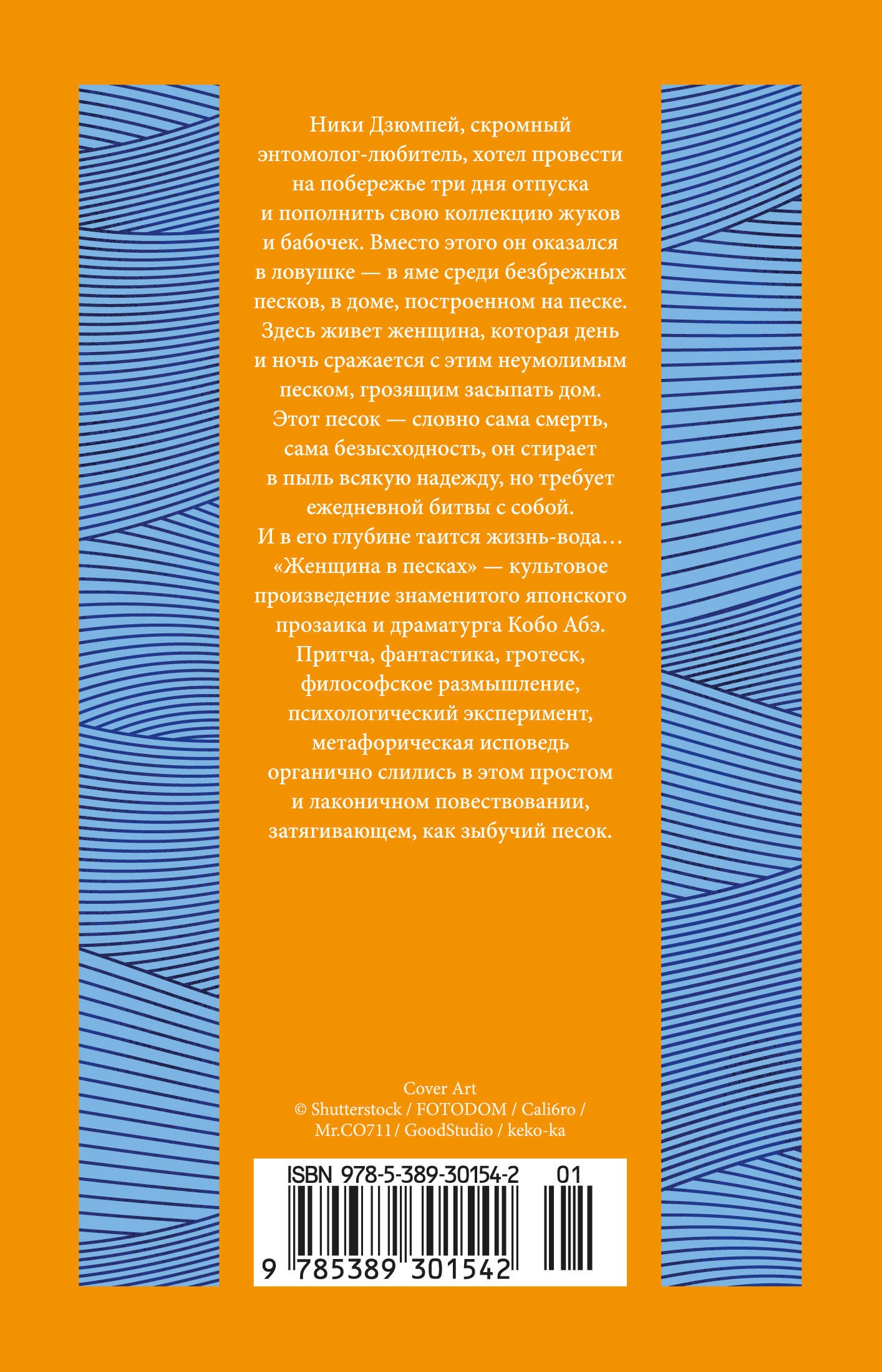 «Женщина в песках» — культовое произведение знаменитого японского прозаика и драматурга Кобо Абэ. Притча, фантастика, гротеск, философское размышление, психологический эксперимент, метафорическая исповедь органично слились в этом завораживающем произведении.Ники Дзюмпей, скромный энтомолог-любитель, хотел провести на побережье три дня отпуска и пополнить свою коллекцию жуков и бабочек. Вместо этого он оказался в фантасмагории — в яме среди безбрежных песков, в доме, построенном на песке. Здесь живет женщина, которая день и ночь сражается с этим неумолимым песком, грозящим засыпать дом. Этот песок — словно сама смерть, сама безысходность, он стирает в пыль всякую надежду, но требует ежедневной битвы с собой. И в его глубине таится жизнь-вода…Стильная, лаконичная и глубокая проза Кобо Абэ никого не оставит равнодушным. Книга станет прекрасным пополнением коллекции восточной литературы, украшением любой библиотеки, уместным подарком мужчине и женщине.