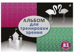 Альбом для тренировки зрения создан и разработан при поддержке ведущих офтальмологов специально для профилактической поддержки и восстановления зрения. В него входят: стереокартинки (стереограммы) разных уровней сложности, видов и тематики, ответы к ним, полихроматические картинки и оптические иллюзии, различные задания для тренировки зрения и картинки для профилактики ленивого глаза, а также гимнастика для глаз. Тематика стереокартинок очень разнообразная: животные, сказочные персонажи, достопримечательности, сюжетные картинки и пр., поэтому заниматься с ними будет интересно как детям разных возрастов, так и взрослым. Разглядывание стереокартинок помогает мышцам глаза расслабляться, благотворно влияет на улучшение и поддержание остроты зрения.