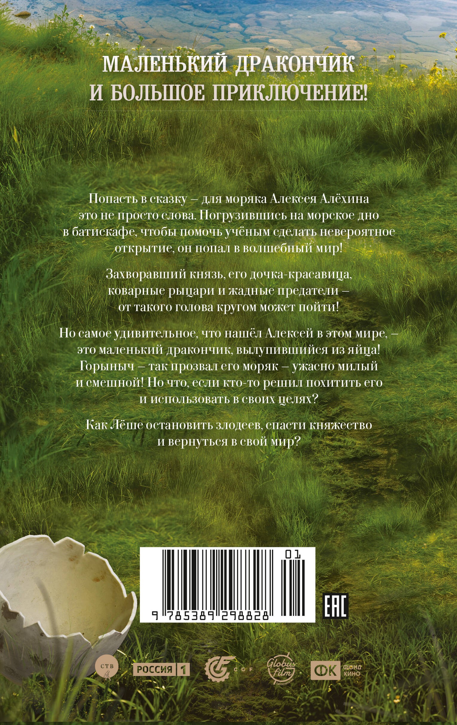 Книга по фильму с цветной вклейкой: для тех, кто любит сказки и верит в волшебство!Попасть в сказку – для моряка Алексея Алёхина это не просто слова.Погрузившись на морское дно в батискафе, чтобы помочь учёным сделать невероятное открытие, он оказался в волшебном мире!Захворавший князь, его дочка-красавица, коварные рыцари и жадные предатели – от такого голова кругом может пойти!Но самое удивительное, что нашёл Алексей в этом мире, это маленький дракончик, вылупившийся из необычного яйца!Горыныч – так прозвал его моряк – ужасно милый и смешной!Но что, если однажды Горыныча решили похитить?Как Лёше остановить злодеев, спасти княжество и вернуться в свой мир?Официальная новеллизация по фильму «Горыныч», от создателей кинокартин «Конёк-горбунок», «По щучьему велению», «Огниво».Книга дополняет художественный мир фильма и будет интересна как зрителям, посмотревшим кино, так и просто читателям сказок.