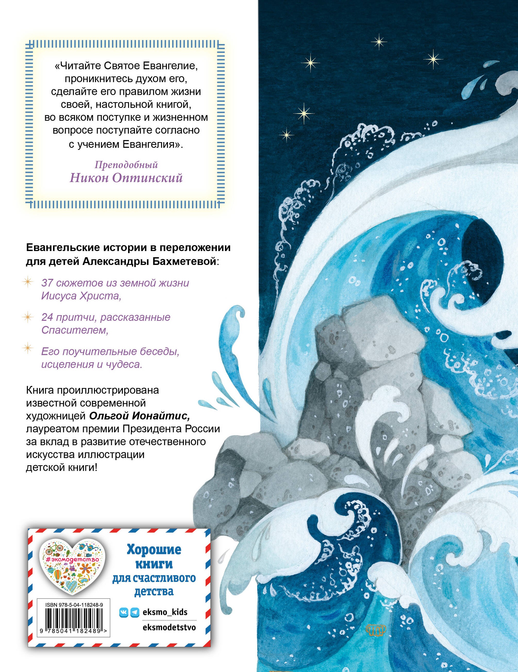 Подарочное издание иллюстрированного Евангелия для детей!Допущено к публикации Издательским советом Русской Православной Церкви.Историю земной жизни Иисуса Христа пересказала для детей Александра Николаевна Бахметева. В конце XIX века её книги о христианской Церкви, Евангельской и гражданской истории были очень популярны и много раз переиздавались.Сложные и глубокие притчи, беседы Спасителя Александра Бахметева излагает живо и доступно для юных читателей. В конце кратких сюжетов — важные советы и благочестивые назидания. В книге 37 сюжетов из земной жизни Иисуса Христа и 24 притчи.Интересный и поучительный рассказ гармонично дополняют рисунки к библейским сюжетам прекрасного художника, известного иллюстратора детских книг Ольги Ионайтис. Художница является лауреатом премии Президента Российской Федерации за вклад в развитие отечественного искусства иллюстрации детской книги!Большой формат, яркие иллюстрации, плотная белая бумага, чёткий шрифт. Цветные иллюстрации почти на каждом развороте.Евангельские сюжеты пересказаны увлекательно и понятно для детей.Для самостоятельного чтения или совместного чтения со взрослыми.