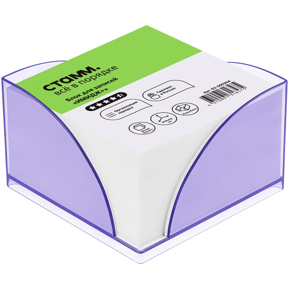 Блок для записей СТАММ Имидж +, 9*9*4,5см, пластиковый бокс, фиолетовый