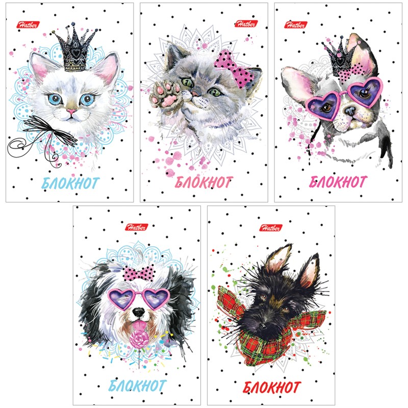 Блокнот А7 48л. на склейке Hatber Модные мордочки, 3-х цветный блок