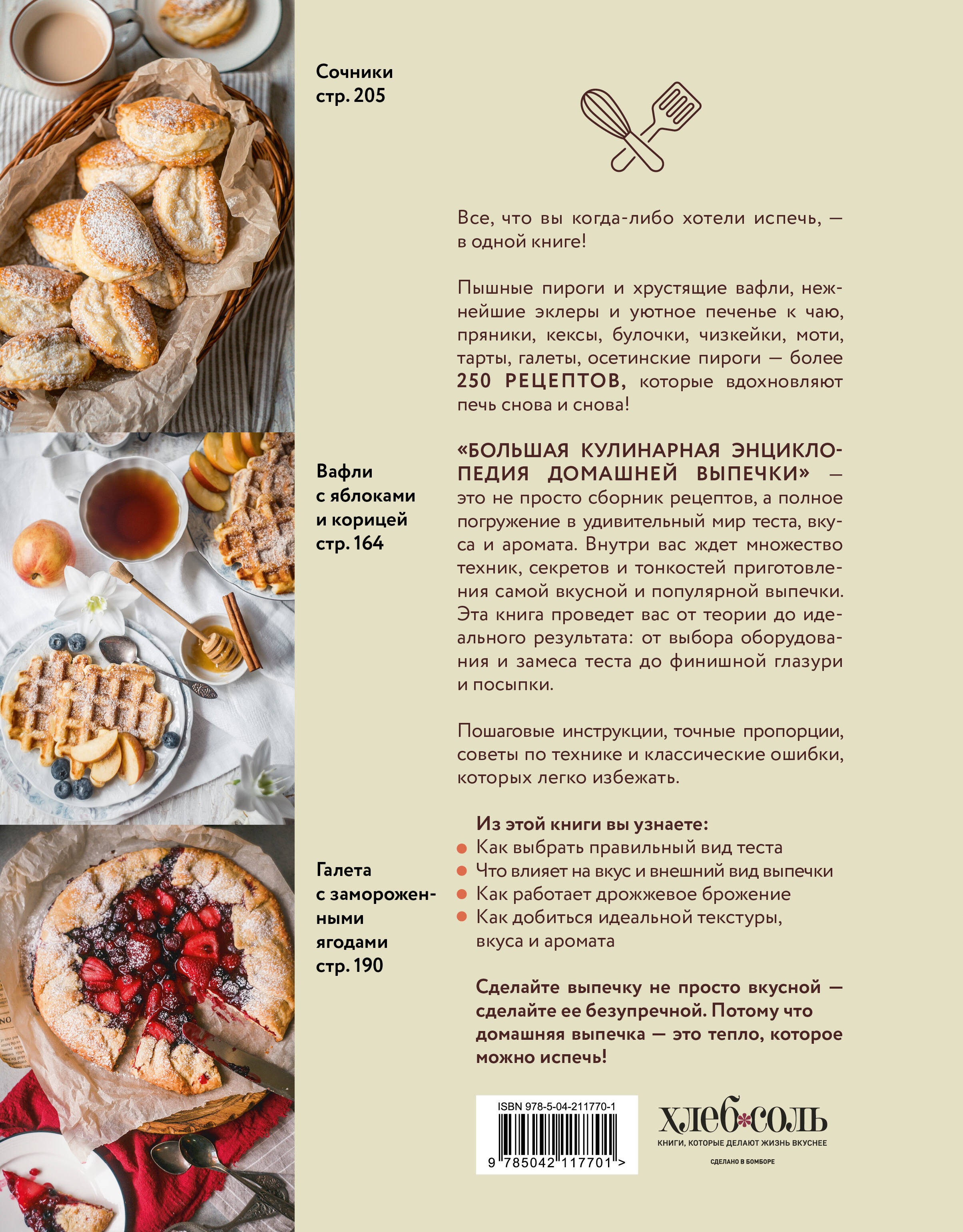 В этой книге — всё, что нужно, чтобы не просто печь, а понимать выпечку от А до Я!Более 250 вдохновляющих рецептов: от воздушных сырников и ароматных пряников до нежнейших эклеров, изысканных тартов, традиционных осетинских пирогов и даже японских моти.В книге:• Подробная теория теста — от дрожжевого до безглютенового.• Чёткие пошаговые инструкции: вы не просто повторяете рецепт, вы учитесь.• Оригинальные и классические рецепты: русская, европейская, восточная выпечка — на любой вкус.• Никаких заумных терминов — только проверенные советы, простые продукты и любовь к делу.Книга идеально подойдёт как новичкам, так и опытным пекарям. Она станет вашим кулинарным справочником на годы вперёд — в будни, праздники и моменты вдохновения.Отличный подарок для себя и близких. Потому что домашняя выпечка — это тепло, которое можно испечь.