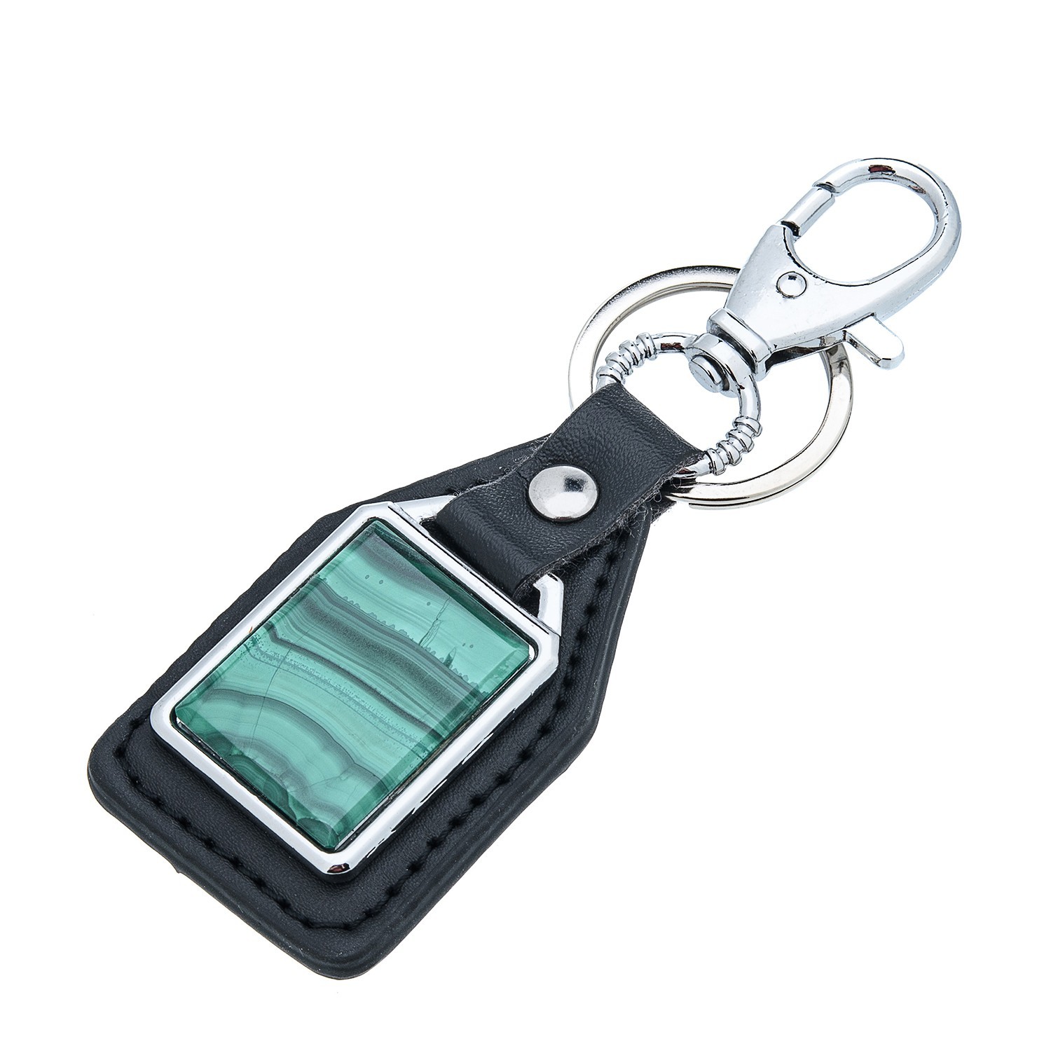 Брелок из кожи с накладкой из малахита 1130935аи
