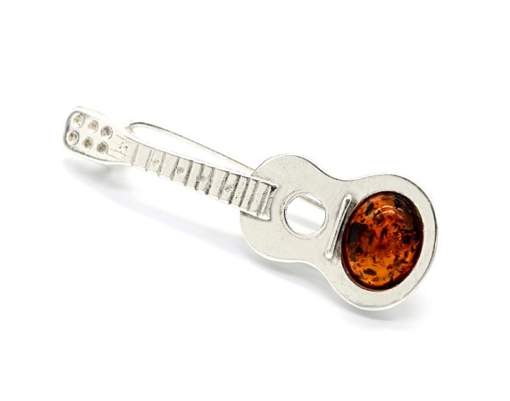 Брошь Гитара с янтар в посеребрен коньяч ЯП0101009
