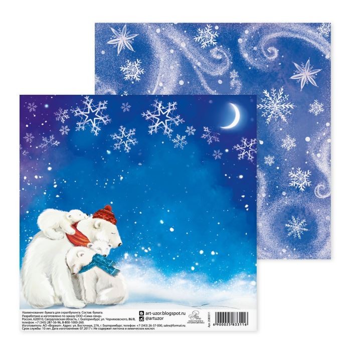 Бумага д/скрапбук 15 5*15 5 Снежная ночь 1шт 2583311 Арт Узор