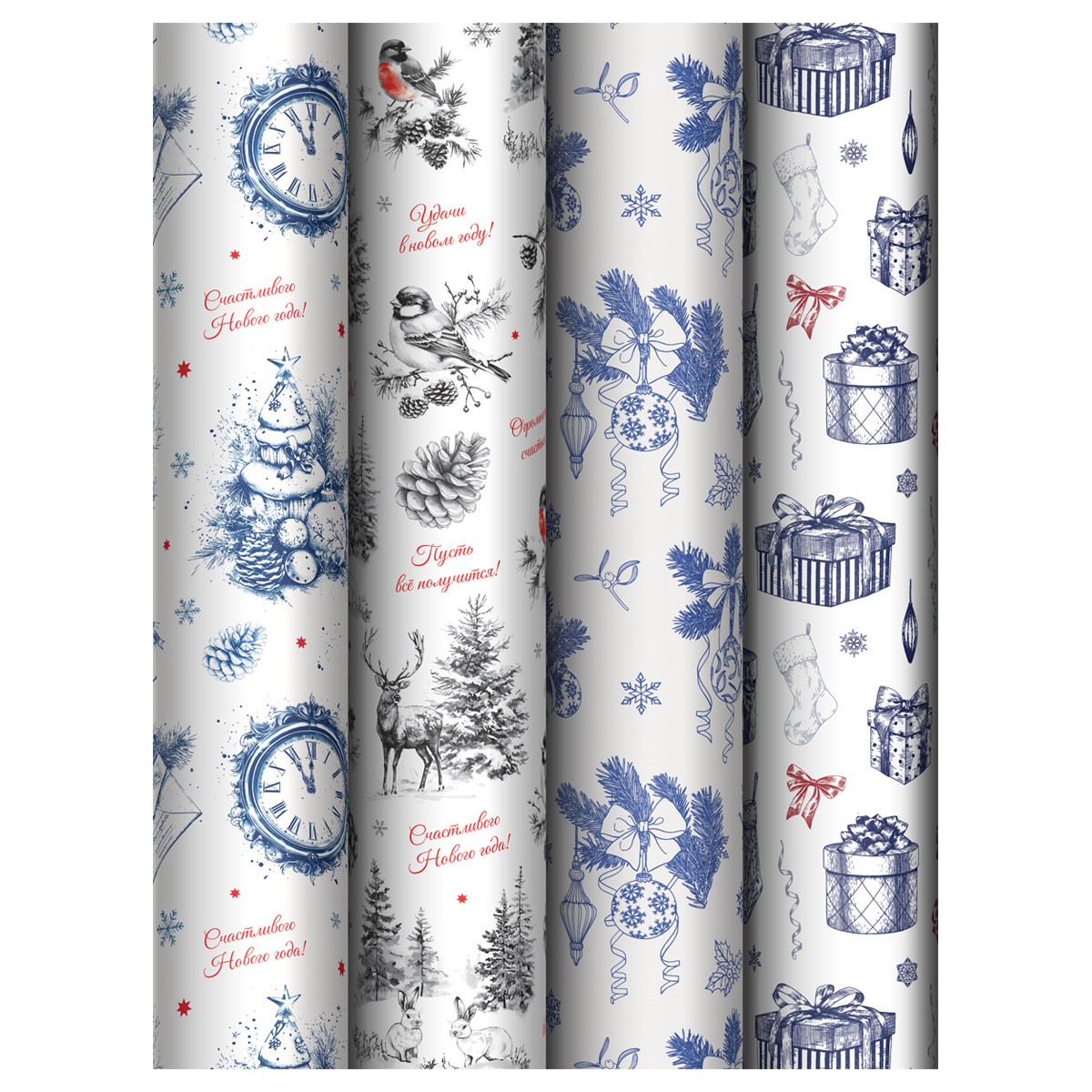 Упаковочная бумага глянц. 70*100см, MESHU Christmas Eve, 80г/м2, ассорти 4 дизайна