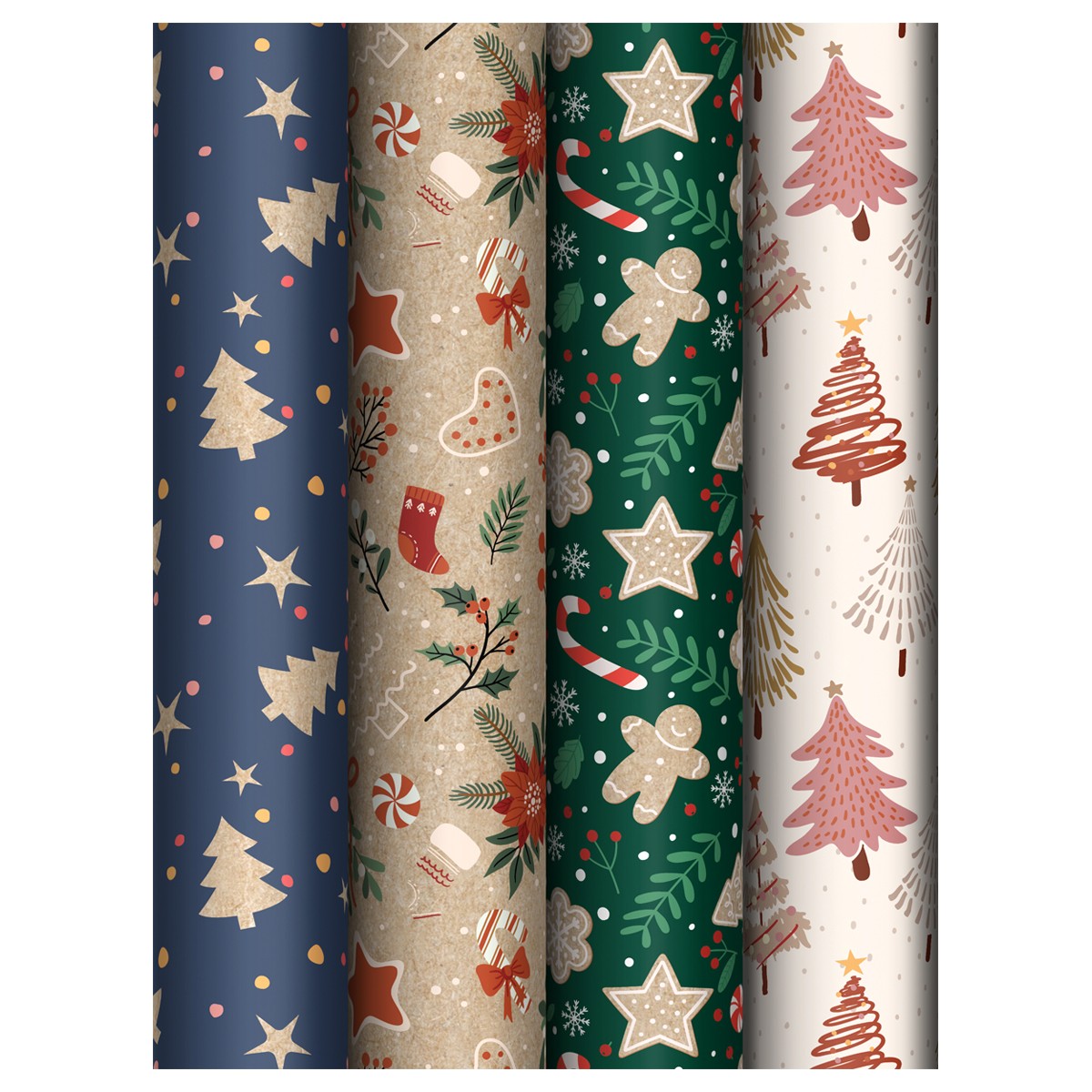 Упаковочная бумага глянц. 70*100см, MESHU Ginger cookies, 70г/м2, ассорти 4 дизайна