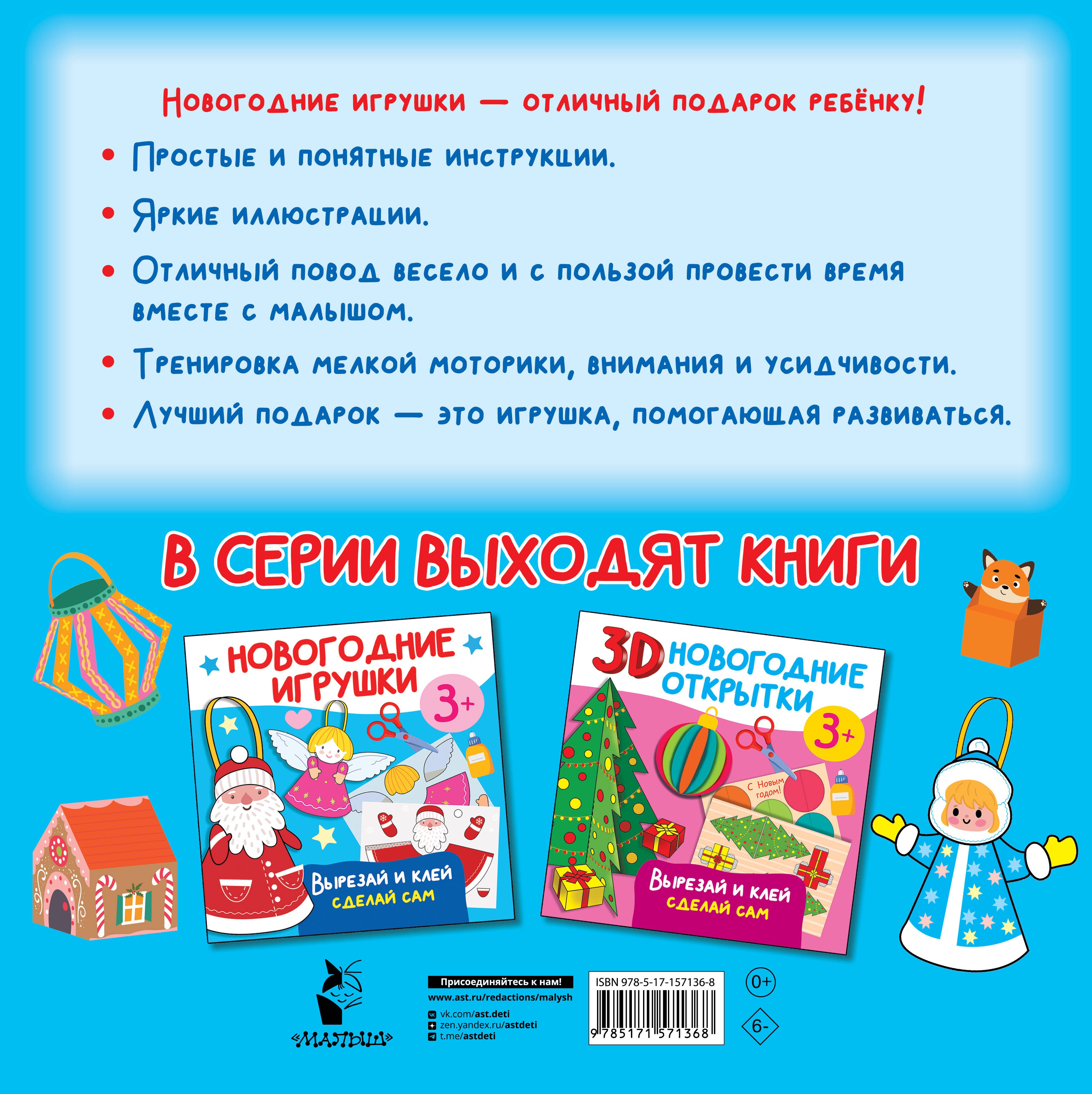 Новый год ещё не наступил, а у вас уже есть подарок для ребёнка! Ярко иллюстрированная книга «Новогодние игрушки. Вырезай и клей. Сделай сам» с подробными и понятными инструкциями обязательно увлечёт вашего малыша.Мы предлагаем вашему вниманию поделки разных уровней сложности: с одними ребёнок успешно справится сам, другие станут отличным поводом весело и с пользой провести время вместе с малышом. Представьте, как будет рад и горд ваш ребёнок, увидев свою игрушку на ёлочке. Фигурки Деда Мороза и Снегурочки, новогодняя ёлочка и праздничный фонарик, рождественский ангел и пряничный человечек… И даже пальчиковый театр!Лучший подарок детям — это игрушка, помогающая развиваться. Задания в нашей книге тренируют мелкую моторику, внимание, усидчивость, активизируют воображение и фантазию, развивают художественный вкус и любовь к творчеству. Формат книги — «волшебный квадрат».Создайте вместе с ребёнком новогоднюю атмосферу в доме!