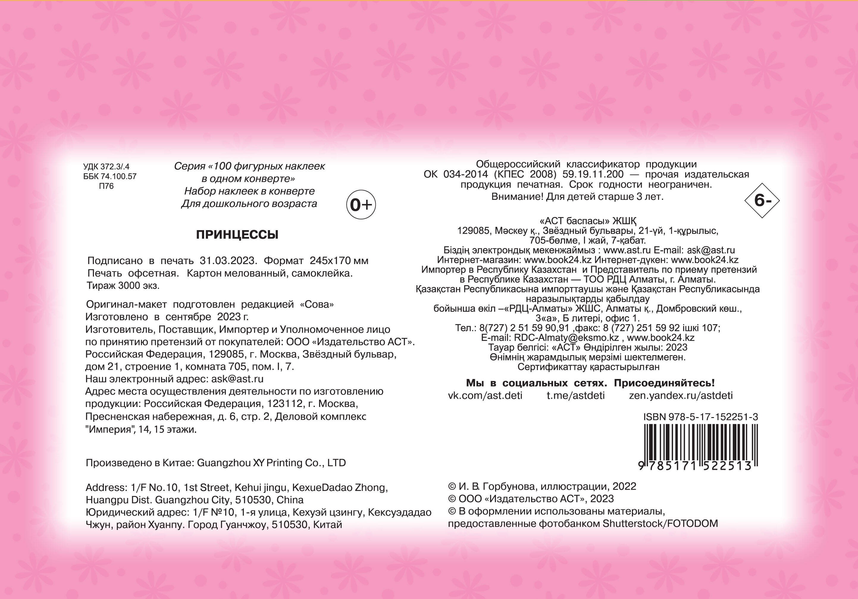 "Принцессы" – большой и яркий конверт, в котором собрано 100 фигурных наклеек. Стикеры универсальны и подойдут для украшения тетрадей, личных дневников и обложек. Внутри нет ни одной повторяющейся картинки: принцессы, кареты, замки, украшения, цветы и любимые питомцы.