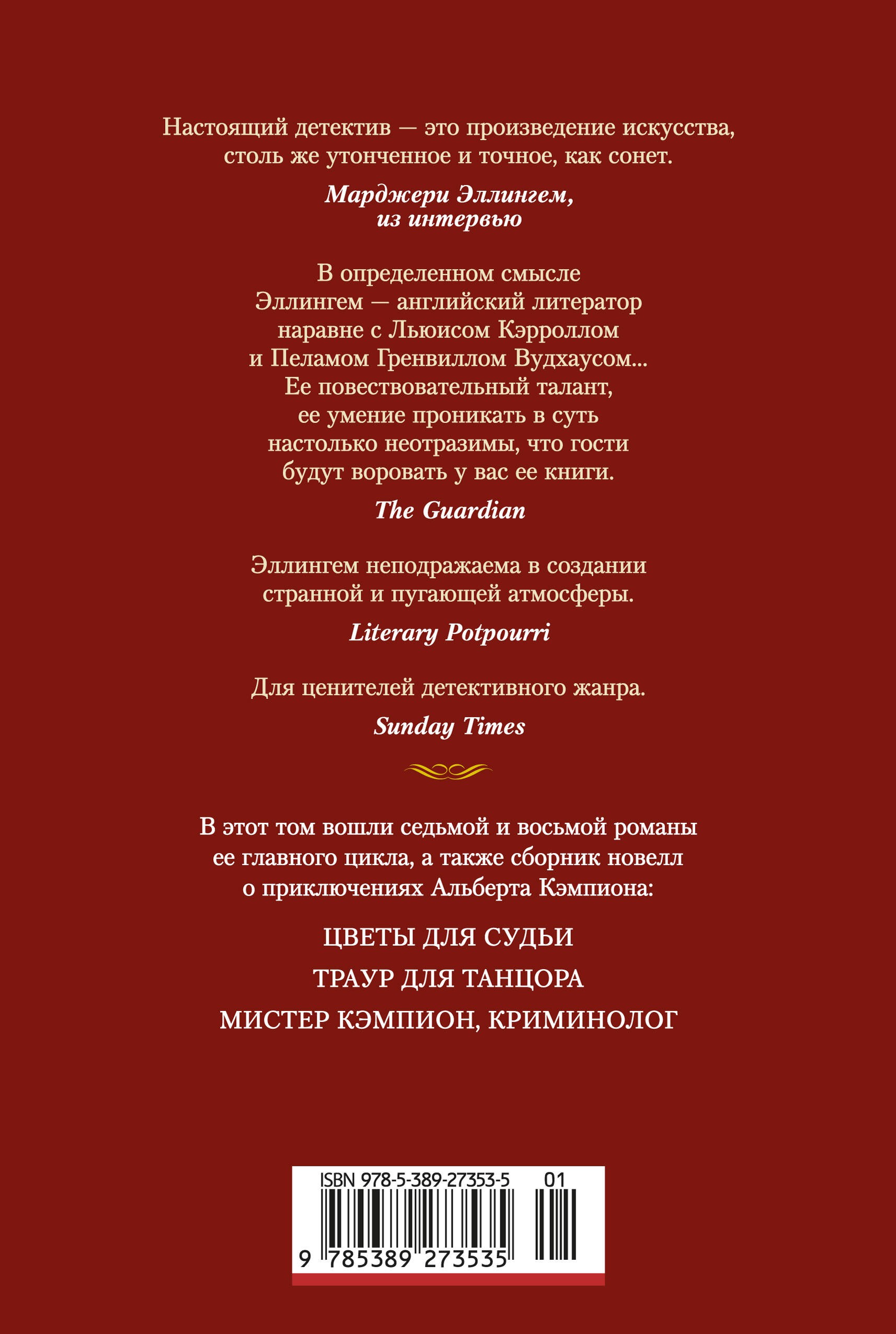 В третий том произведений Марджери Эллингем вошли седьмой и восьмой романы, а также повесть и шесть новелл о приключениях Альберта Кэмпиона, таинственного и неординарного сыщика-джентльмена. Этот образ задумывался как пародия на лорда Питера Уимзи из романов Дороти Сэйерс, но вскоре Кэмпион «вырос» в совершенно самостоятельного героя, наполовину сыщика, наполовину искателя приключений. Марджери Эллингем — признанная королева английского детектива, выделявшаяся на фоне других авторов этого жанра, по выражению Агаты Кристи, «как горящая лампа».Забота о репутации фирмы всегда стояла у Джона Уиддоусона на первом месте. И двадцать лет назад, и сейчас, когда под ударом не только репутация, но и свобода его двоюродного брата. Мистер Уиддоусон предпочел блюсти честь возглавляемого им издательского дома. А вот мистер Альберт Кэмпион предпочел докопаться до сути этой трагедии, и не только потому, что брат издателя — его давний друг, которого хочется вызволить из беды.Произведения публикуются в новом переводе.
