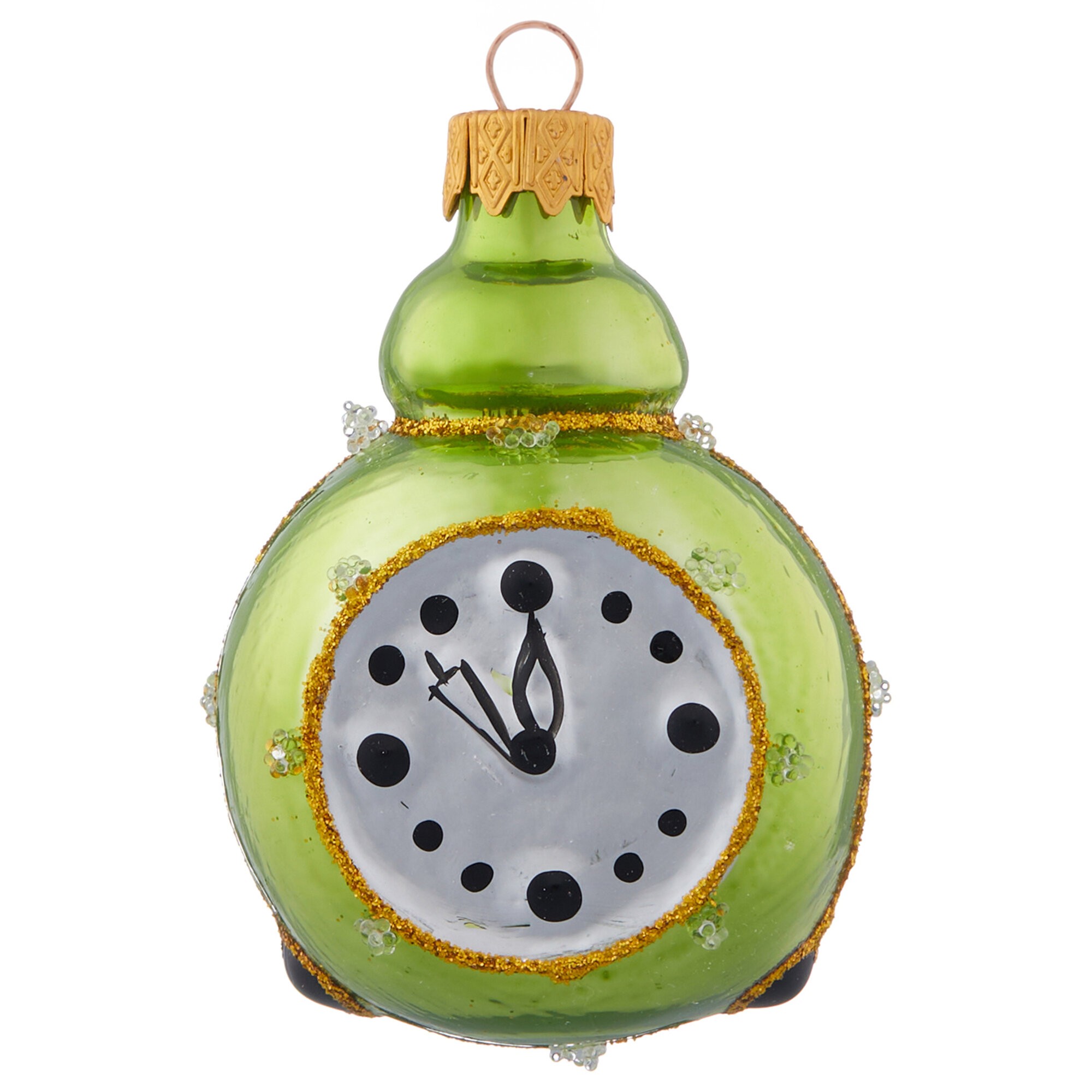Елочная игрушка стекло Часы-будильник зеленые h-8,5см в упаковке ФУ-772/1