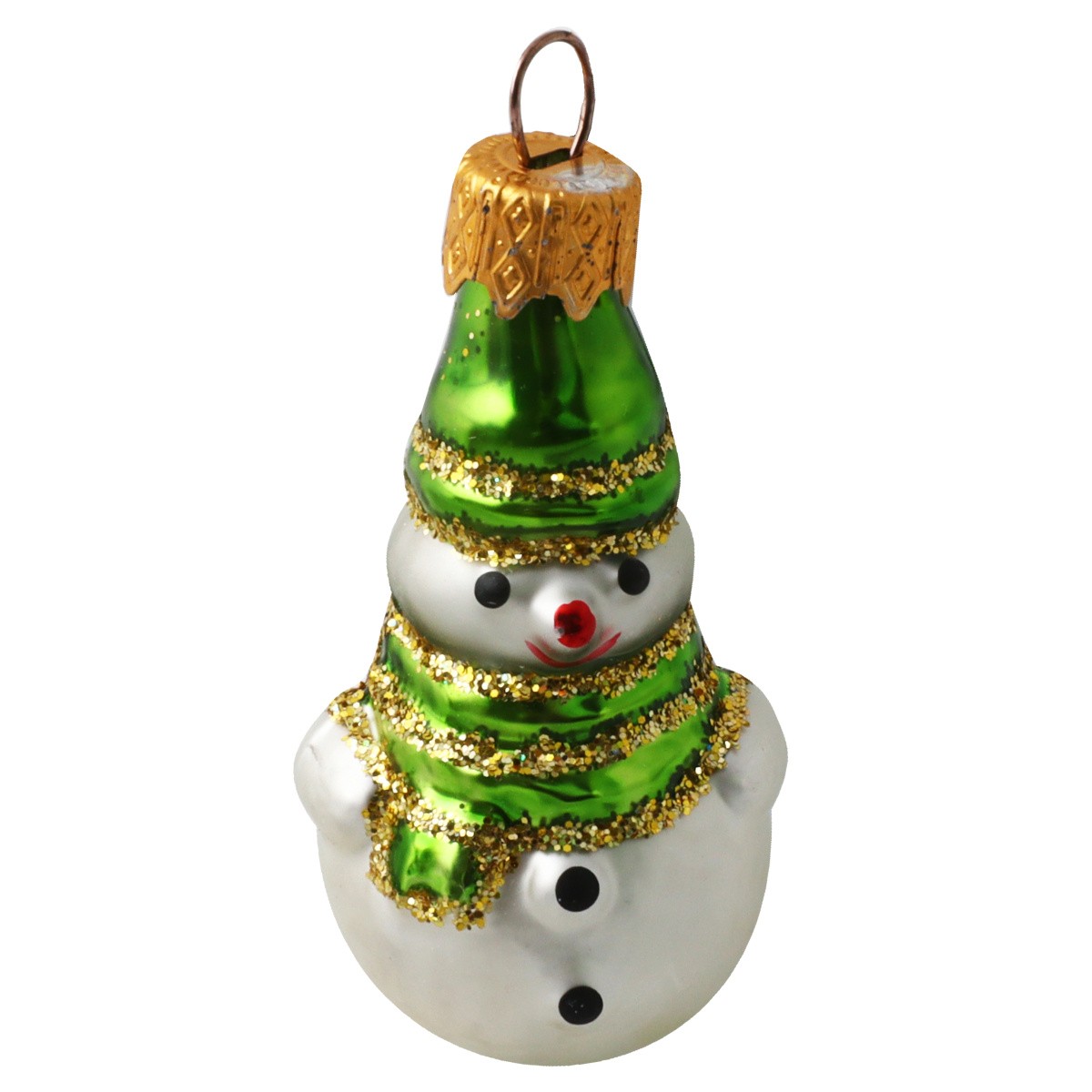 Елочная игрушка стекло Снеговик мини h-7см в упак ФУ-76/6