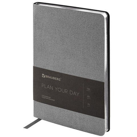 Недатированный ежедневник BRAUBERG "Metallic" с оригинальной обложкой из искусственной кожи предназначен для энергичных людей, любящих нестандартные подходы к решению поставленных задач. Внутренний блок включает 136 листов белой бумаги плотностью 70 г/м2. Каждая страничка имеет перфорированный угол. Благодаря стандартному формату А5 (138х213 мм) ежедневник удобно использовать как в офисе, так и на выездных деловых встречах. Мягкая (интегральная) обложка стилизована под фактурную кожу с глянцевым отливом. Подходит для горячего тиснения. Дополнением является закладка-ляссе, с помощью которой при необходимости можно быстро открыть ежедневник на нужной странице.