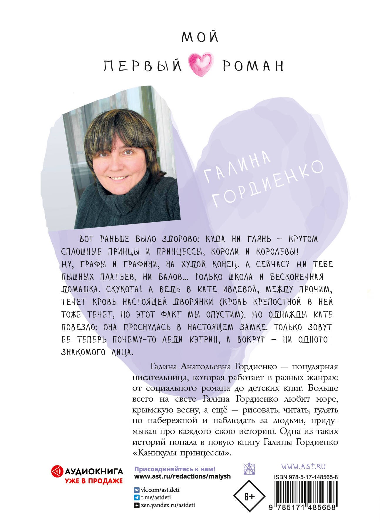 Катя Ивлева — обычная тринадцатилетняя девчонка. Она ходит в школу, скучает на уроках и мечтает о красивой жизни. Однажды Катя узнала, что в роду у нее были дворяне. И если бы не революция 1917 года, сейчас она бы кружилась на балу в пышном платье, а не сидела за партой. "Каникулы принцессы" Галины Гордиенко — это история о том, что наши мечты имеют свойство сбываться. Но так ли это здорово?Для среднего школьного возраста.