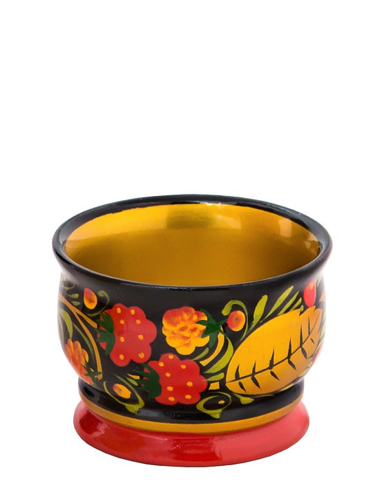 Солонка "Мелкая". Размер изделия 40х60х60 мм. Изготовлена в полном соответствии с традиционной хохломской технологией золочения. Выточена из цельного дерева вручную. Имеет авторскую роспись в технике фонового письма. Роспись «Черный фон. Малина». Лаковое покрытие и многократный высокотемпературный обжиг делает изделие влагозащищенным и износоустойчивым. Все применяемые при производстве материалы натуральны и экологичны. Солонка предназначена для хранения соли, специй, а также служит элементом декора помещения. На каждом изделии имеется подпись автора росписи. Упаковка - пакет.