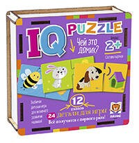 Деревянные пазлы выполнены из экологически чистых материалов. Они прочные и долговечные, поэтому могут передаваться от ребёнка к ребёнку.Размер крупных деталей идеально рассчитан под эргономику детской руки.В наборе собрано 24 красочных изображения: животное и его жилище. Задача игры - правильно составить пары из двух элементов. Всего в коробочке 24 детали, 12 пазлов-парочек.Занятие с пазлами будет способствовать развитию мелкой моторики, восприятия, внимания и пространственного мышления."Шпаргалка" для родителей, которая также входит в набор, содержит задания для запуска и активизации речи ребёнка.Для детей от 2 лет.