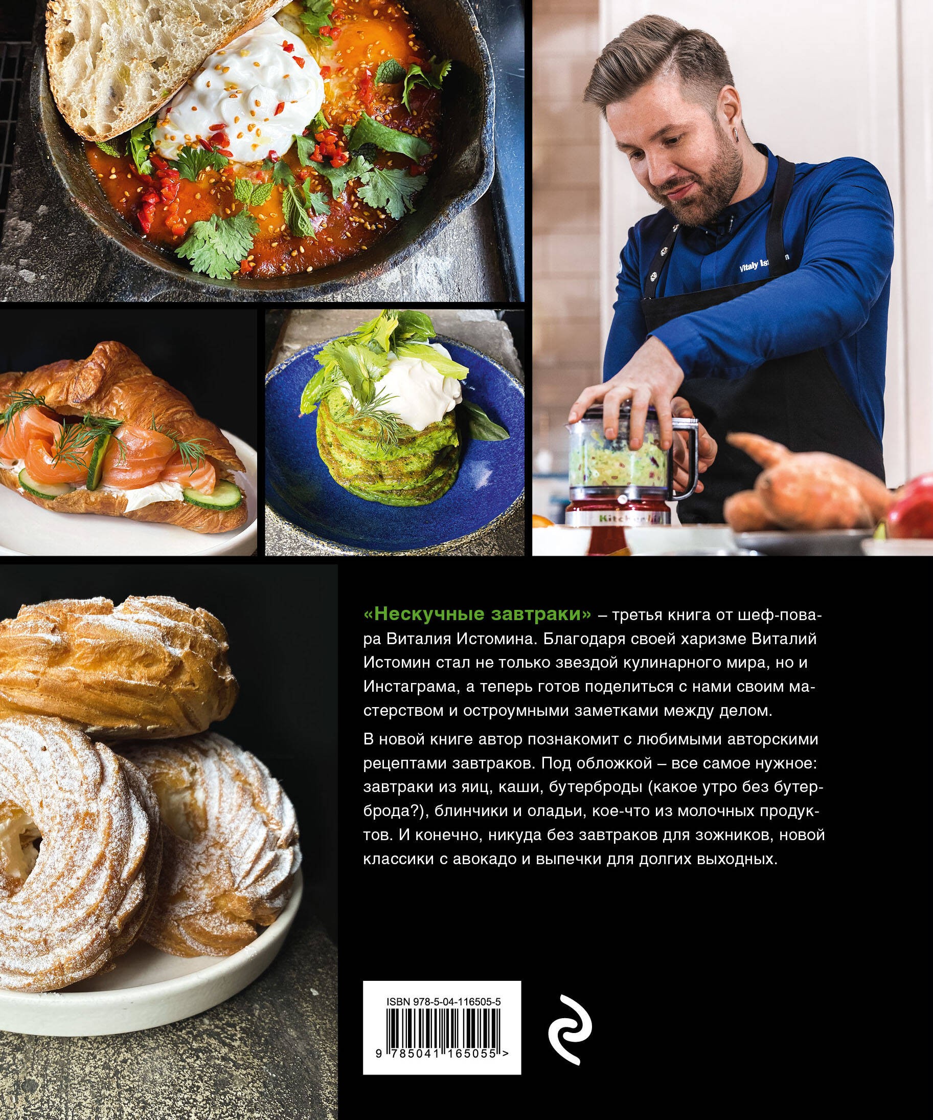 «Нескучные завтраки» — третья книга от экс-шефа гастробистро Tehnikum и ресторана «Сахалин».Благодаря своей харизме Виталий Истомин стал не только звездой кулинарного мира, но и «Инстаграма», а теперь готов поделиться с нами своим мастерством и остроумными заметками между делом.В новой книге автор познакомит с любимыми авторскими рецептами завтраков. Под обложкой — все самое нужное: завтраки из яиц, каши, конечно же, бутерброды, блинчики и оладьи, кое-что из молочных продуктов. И, конечно, никуда без завтраков для зожников, новой классики с авокадо и выпечки для долгих выходных.В новой книге вы найдете 45 способов сделать утро таким идеальным, что обзавидуется половина модного «Инстаграма». Хотите фотогеничный завтрак, который не стыдно выложить в сторис? Яйца «Рояль» с лососем помогут сорвать джекпот из лайков. Мечтаете начать день по-королевски? Попробуйте роскошную брускетту с помидорами и маринованными артишоками. Не собираетесь никуда торопиться и посвятить себя ощущениям в моменте? Сделайте сами слоеное тесто и испеките круассаны — останется только выбрать начинку.И, конечно, Виталий Истомин не забыл про любителей традиционных завтраков с кашей, утренних блинчиков, а также зожников: пшенка с тыквой, оладьи из печеной моркови и киноа-боул с авокадо и яйцом пашот только и ждут, когда же вы их приготовите.