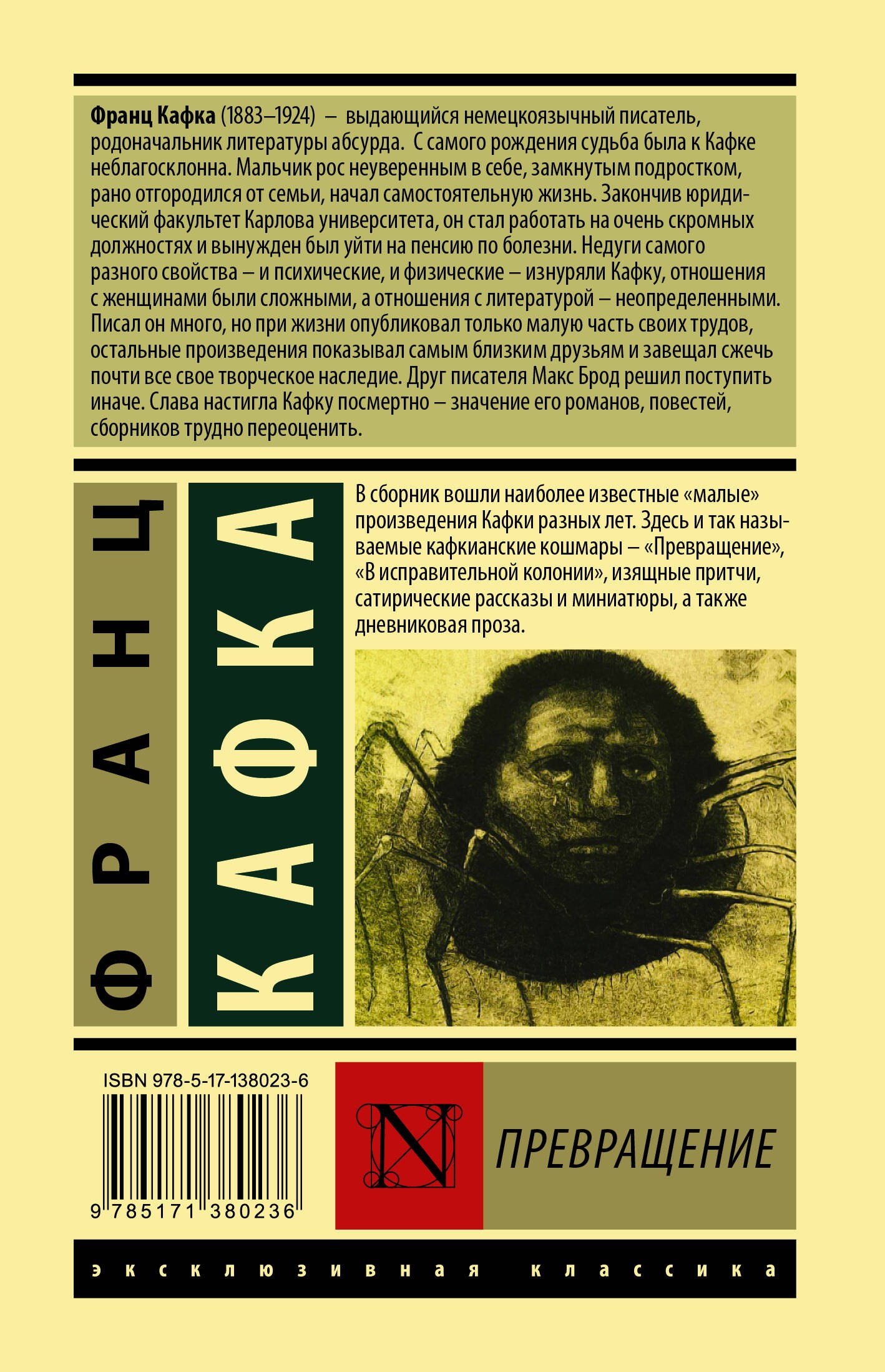 В сборник вошли наиболее известные "малые" произведения Кафки разных лет. Здесь и так называемые кафкианские кошмары – "Превращение", "В исправительной колонии", изящные притчи, сатирические рассказы и миниатюры, а также дневниковая проза.