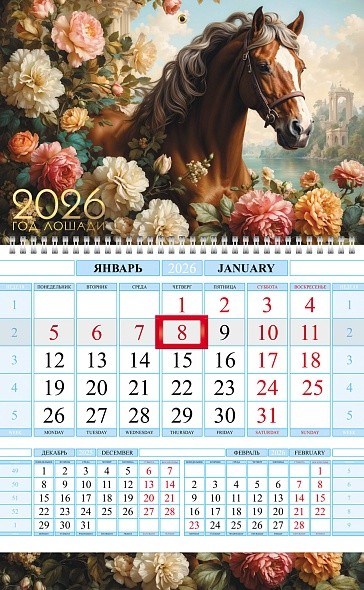 Календарь 2026 кварт 1-блоч на 1 гребне 32320 Год лошади
