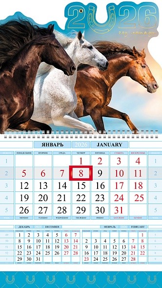 Календарь 2026 кварт 1-блоч на 1 гребне 34586 Год лошади