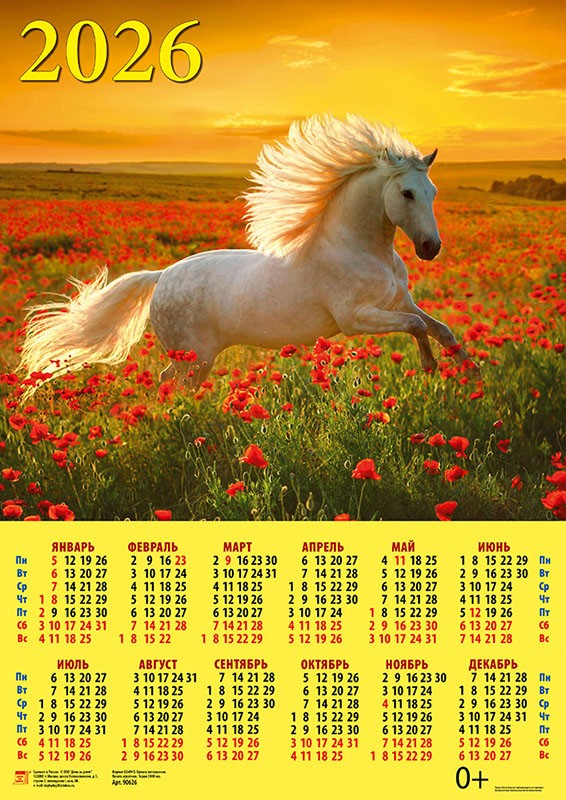 Календарь 2026 лист А2 90626 Год лошади Среди цветов на закате