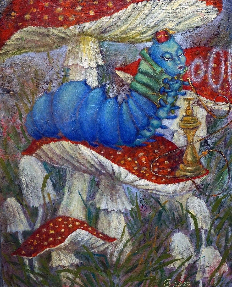Наталья Гартман картина «Голубая гусеница с кальяном» Холст акрил 50х40