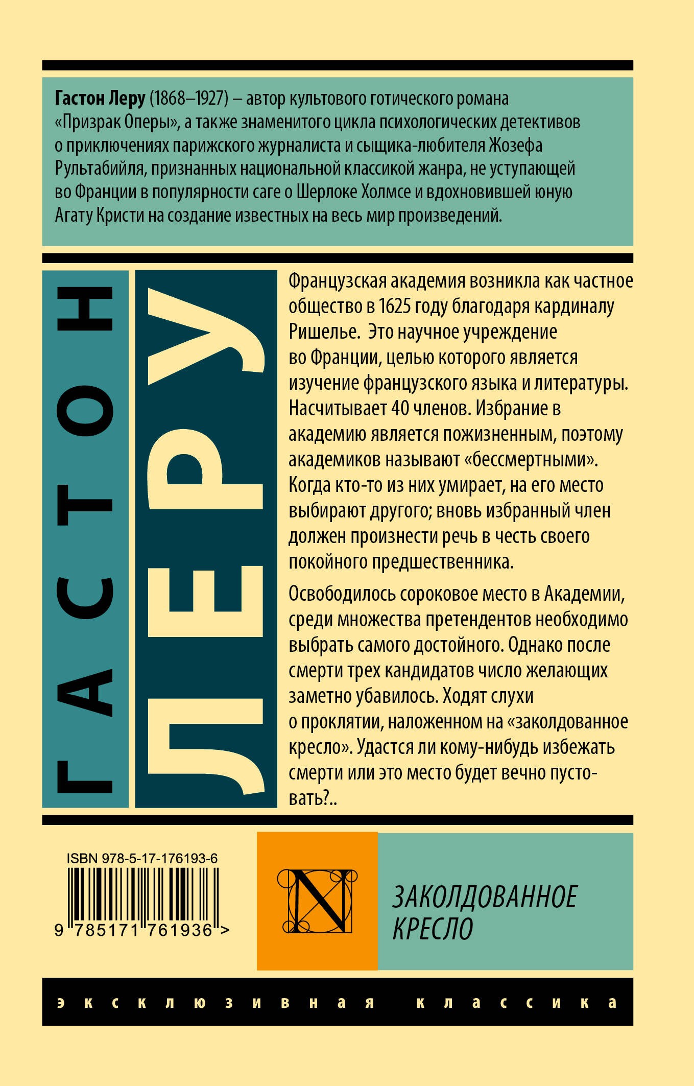 — От автора бестселлеров «Призрак оперы» и «Духи дамы в черном».— Гастон Леру — популярный французский писатель начала XX века и один из отцов-основателей франкоязычного детектива.— «Заколдованное кресло» — увлекательный детектив с динамичным сюжетом, непредсказуемой развязкой и легкой примесью мистики.— Издание в серии «Эксклюзивная классика» — в удобном карманном формате и узнаваемом оформлении.