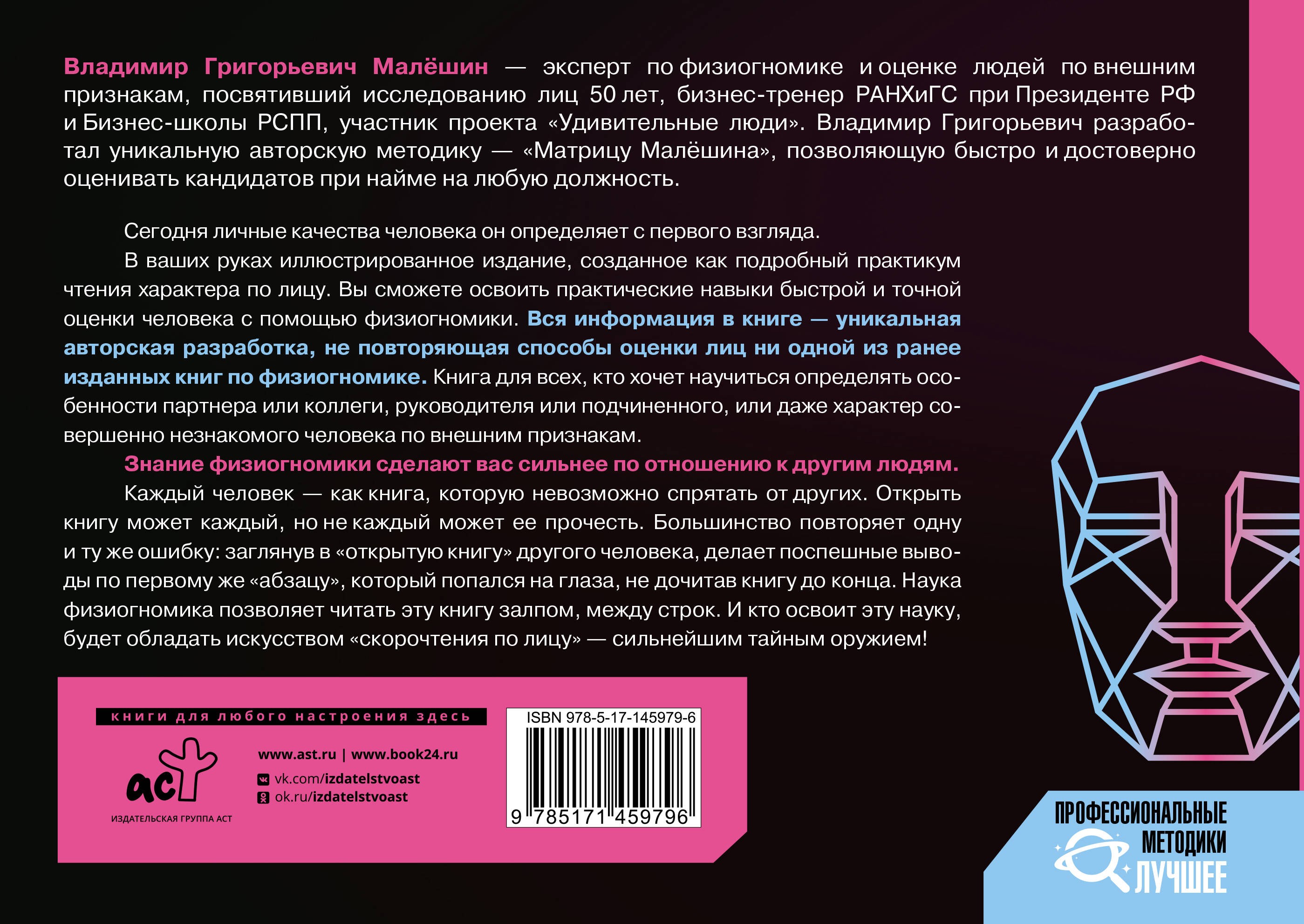 Владимир Григорьевич Малёшин – эксперт по физиогномике и оценке людей по внешним признакам, посвятивший исследованию лиц 50 лет, бизнес-тренер РАНХиГС при Президенте РФ и Бизнес-школы РСПП, участник проекта "Удивительные люди". Владимир Григорьевич разработал уникальную авторскую методику – "Матрицу Малёшина", позволяющую быстро и достоверно оценивать кандидатов при найме на любую должность.