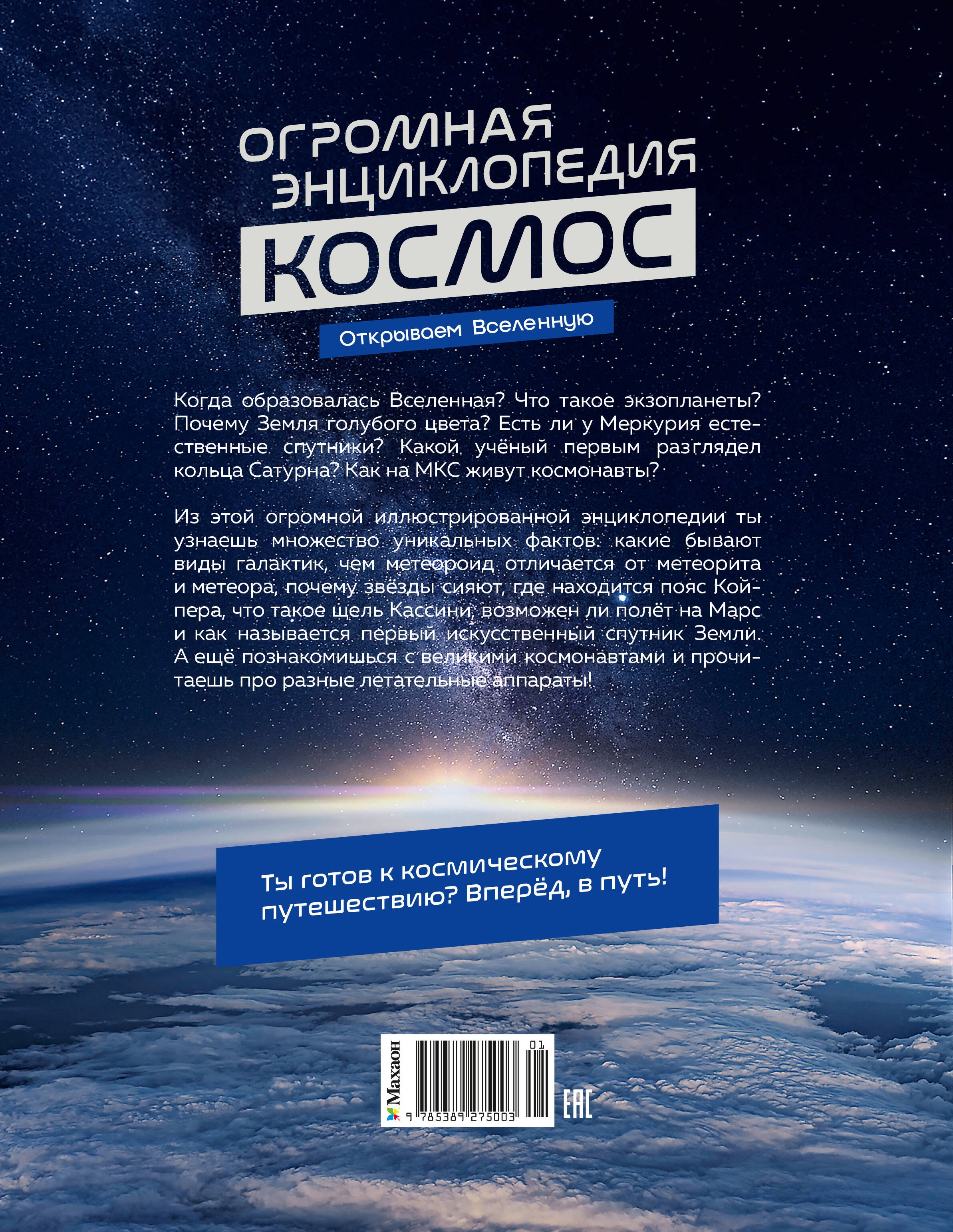 Самая полная энциклопедия про тайны ВселеннойЧто такое экзопланеты? Как на МКС живут космонавты? Почему Земля голубого цвета?В этой огромной иллюстрированной энциклопедии есть ответы на все вопросы про тайны космоса!В этой познавательной книге вас ждут:• самые актуальные сведения о секретах космоса: какие бывают виды галактик, чем метеороид отличается от метеорита и метеора, почему звёзды сияют и что такое щель Кассини;• знакомство с великими космонавтами и факты про разные летательные аппараты;• сложная информация представлена доступным для детей языком;• красочные иллюстрации и яркие фотографии;• большой объём (304 с.);• твёрдая обложка, лак, фольга;• хорошая белая бумага;• крупный шрифт;• новые знания, которые расширят кругозор школьников и пригодятся им для ответов на уроках физики и окружающего мира.Книга станет отличным подарком на любой праздник для мальчиков и девочек, которые увлекаются астрономией.