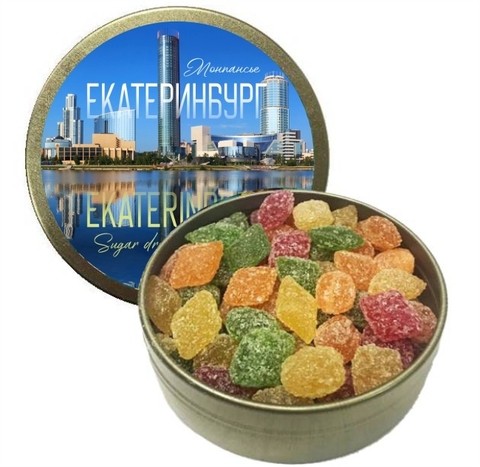 Предлагаем монпансье в жестяной баночке с популярными видами города Екатеринбурга! Наши монпансье имеют превосходный, знакомый с детства вкус и натуральный состав. Леденцы с видами города - замечательный сладкий сувенир из путешествия, такой подарок оценять и взрослые, и дети.