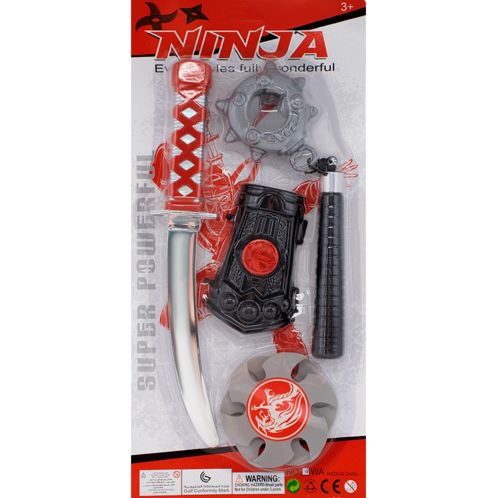 Комплектация: катана - 1 шт, сюрикены - 2 шт, нунчаки - 1 шт, нарукавник - 1 шт