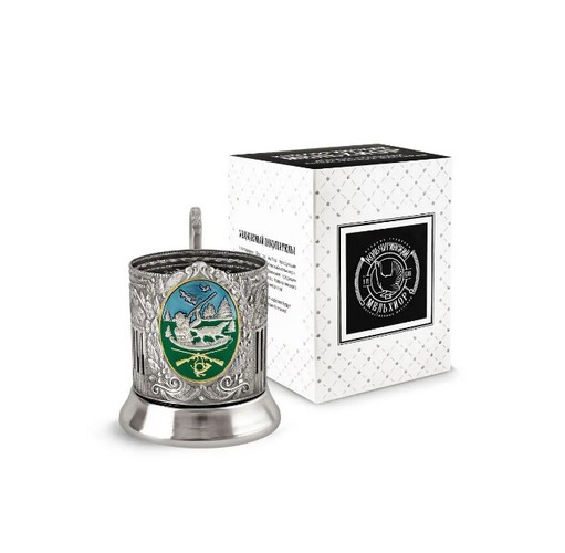 Набор Подстаканник никелированный с ч/п Охотник стакан+ложка