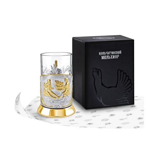 Набор Подстаканник никелированный с частичной позолотой "Охотники" (+стакан, +ложка) (Кольчугинский мельхиор)