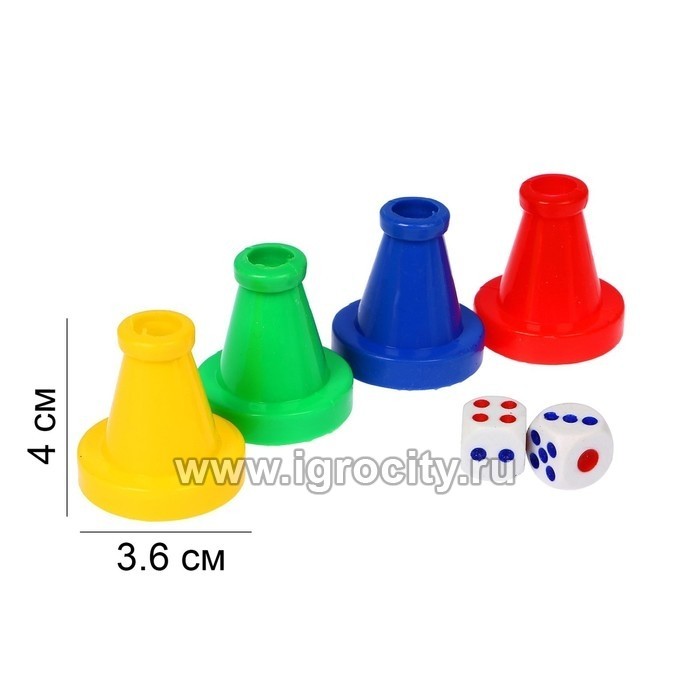 Набор для игры в кости 4 фишки + 2 кубика 2996884