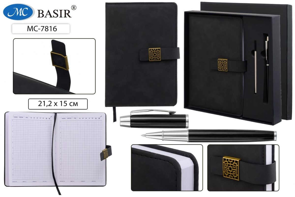 Набор подар Ежедневник недатА5 исккожа черн ручка стержень 7816 Basir