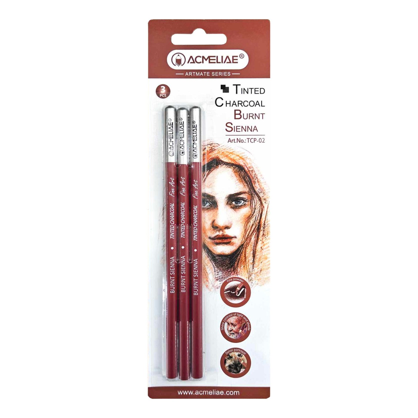 Набор угольных карандашей 3шт жженая сиена блистер TCP-02 Acmeliae