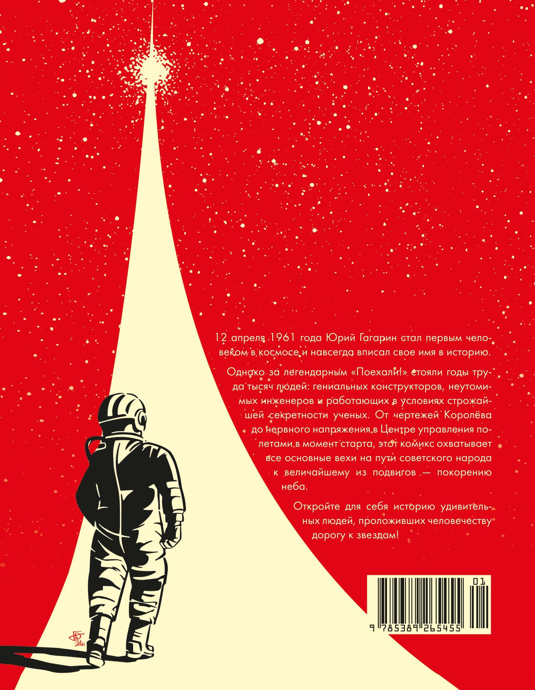 12 апреля 1961 года Юрий Гагарин стал первым человеком в космосе и навсегда вписал свое имя в историю.Однако за легендарным «Поехали!» стояли годы труда тысяч людей: гениальных конструкторов, неутомимых инженеров и работающих в условиях строжайшей секретности ученых. От чертежей Королёва до нервного напряжения в Центре управления полетами в момент старта, этот комикс охватывает все основные вехи на пути советского народа к величайшему из подвигов — покорению неба.Откройте для себя историю удивительных людей, проложивших человечеству дорогу к звездам!