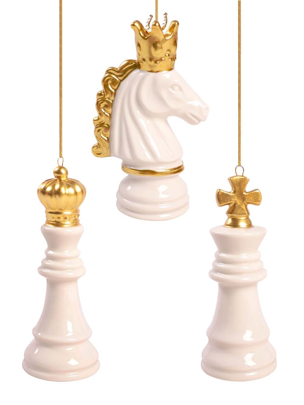 Новогоднее украшение подвесное Набор 3 шахмат фигур фарфор в коробке 94956 Феникс