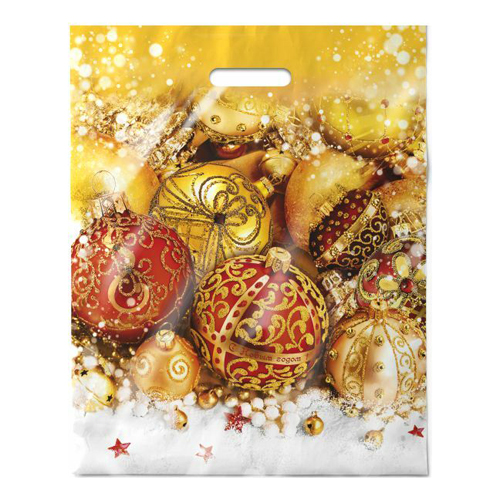 Пакет п/эт с вырубн ручк 40х50см/80 мкм Ёлочный наряд Интерпак