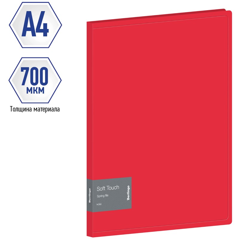 Папка с пружинным скоросшивателем Berlingo Soft Touch, 17мм, 700мкм, красная, с внутр. карманом