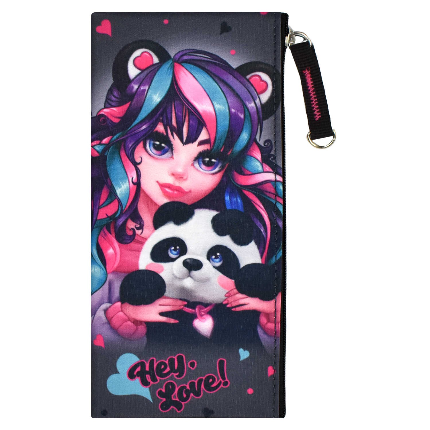 Пенал-косметичка 1 отделение текстильный на молнии Девушка с пандой 65282 Феникс