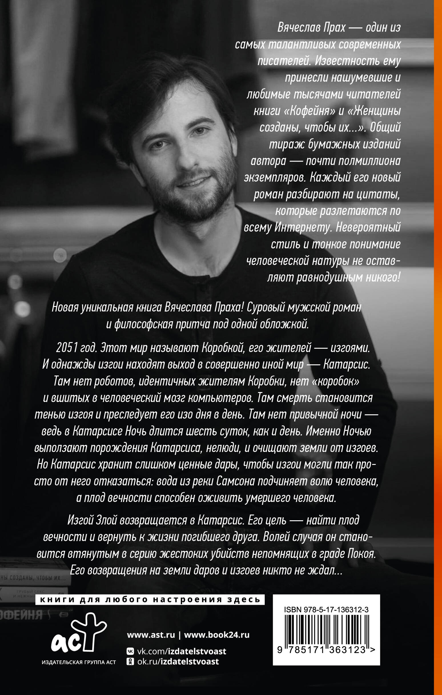 — Новинка от Вячеслава Праха — одного из самых популярных российских писателей, автора культовой «Кофейни» и романа «Женщины созданы, чтобы их».— Суровый мужской роман, мистический триллер и философская притча под одной обложкой.— Общий бумажный тираж книг Вячеслава Праха почти 500 000 экземпляров!Мир в 2051 году навсегда изменился. Его прозвали Коробкой те, кто выжил — потерянные изгои, и каждый из них жаждет попасть в Катарсис.Там протекает река Самсон, вода из которой подчиняет волю человека, там можно оживить умершего, если добыть плод вечности. Но Катарсис охраняют нелюди, ведущие охоту на любого изгоя.Злой решается вернуться в Катарсис, чтобы найти плод вечности и оживить друга. Но волею судьбы оказывается втянут в серию жестоких убийств в граде Покоя.