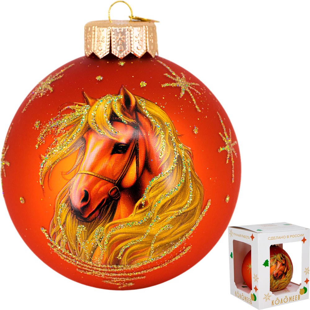 Шар СГ2026 стекло 100мм Конь златогривый 1 в упаковке КУ-100-254013/1
