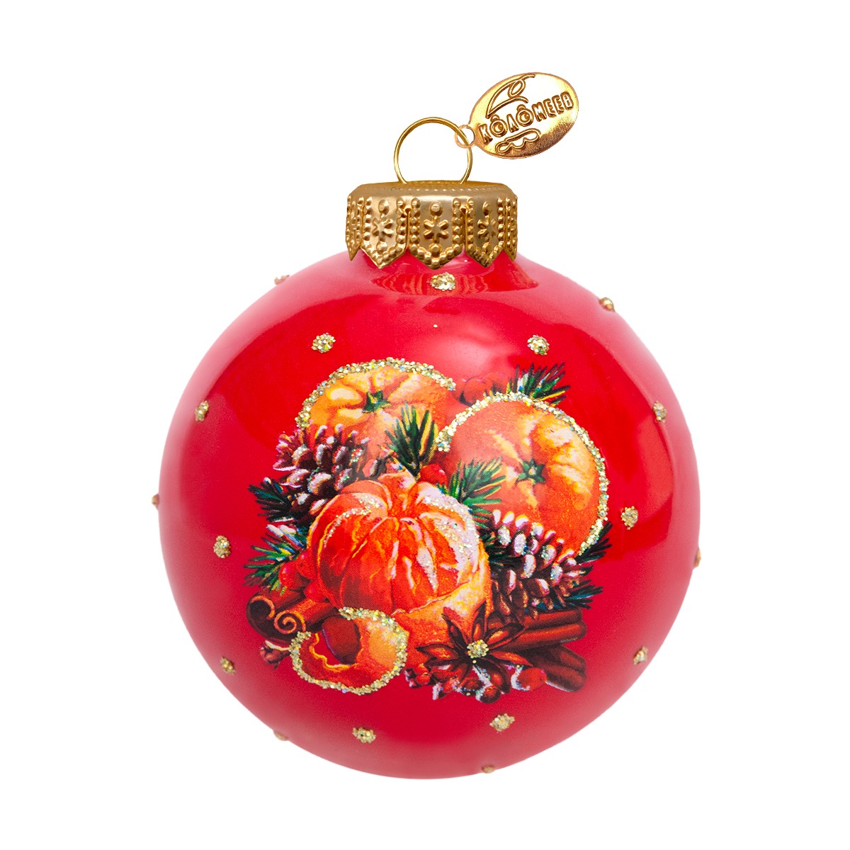 Шар стекло 80мм Фрукты зимние в упаковке КУ-80-254026