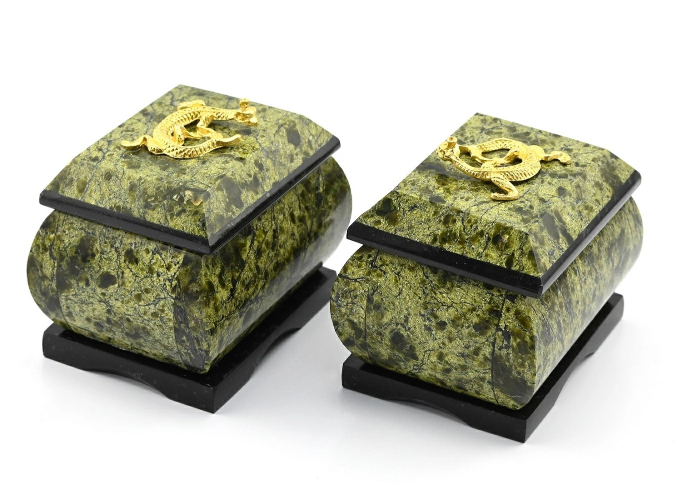 Шкатулка из змеевика прямоугол с ящеркой 68*52*60мм 1310652