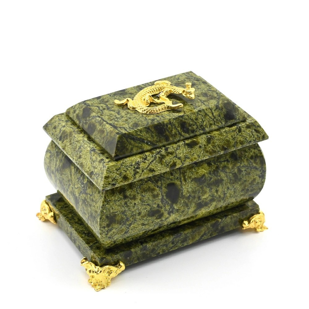 Шкатулка из змеевика с ящеркой 90*65*70мм 1310625-1
