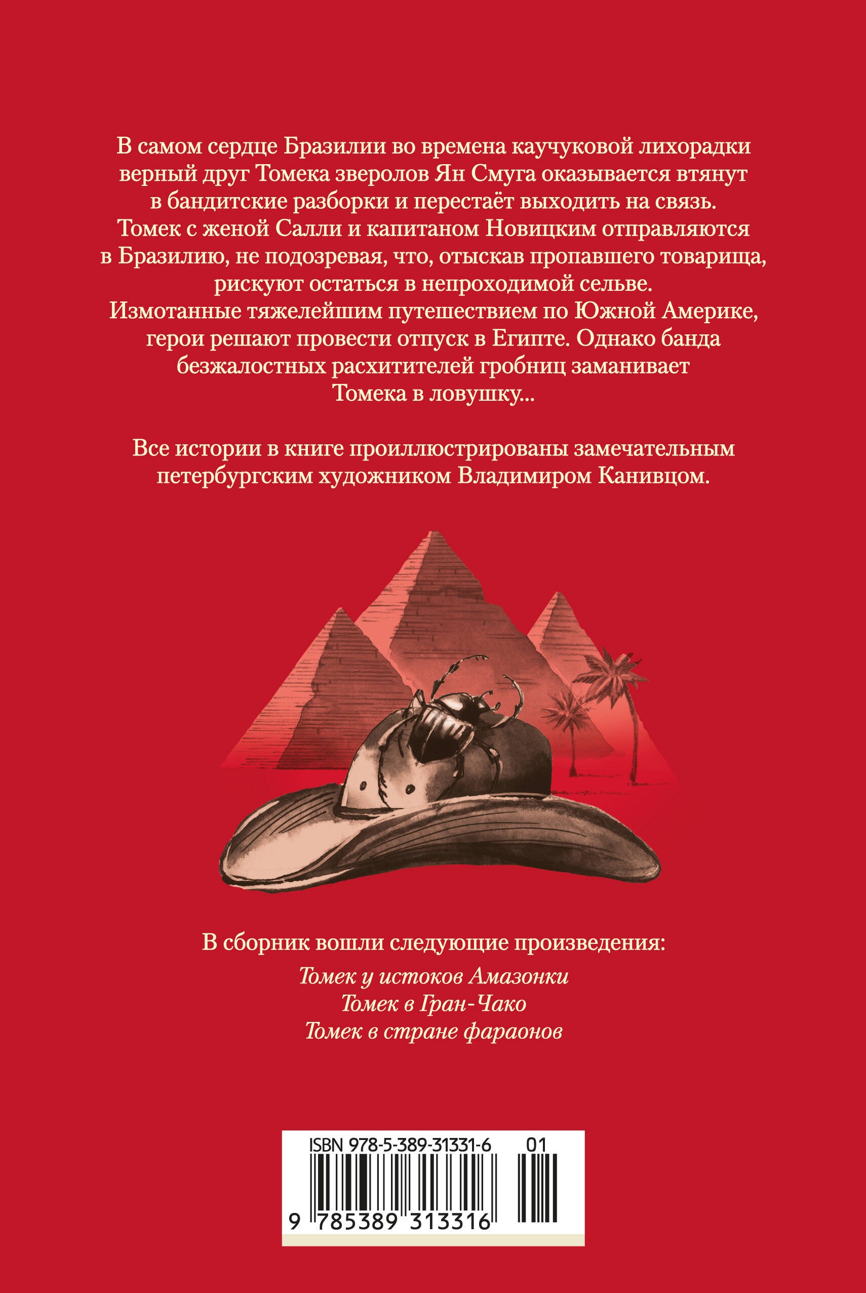 На историях о бесстрашном Томеке Вильмовском, вышедших из-под пера польского писателя Альфреда Шклярского, выросло не одно поколение любителей жанра. Перед вами сборник, включающий истории о трёх приключениях юного путешественника.В самом сердце Бразилии, во времена каучуковой лихорадки верный друг Томека зверолов Ян Смуга оказывается втянут в бандитские разборки и перестает выходить на связь. Томек, его жена Салли и капитан Новицкий немедленно бросают все дела и отправляются в Бразилию, не подозревая, что отыскав пропавшего товарища рискуют остаться в непроходимой сельве. Измотанные тяжелейшим путешествием по Южной Америке, герои решают провести отпуск в Египте. Однако спокойный отдых превращается в очередное смертельно опасное приключение. Банда безжалостных расхитителей гробниц заманивает исследовательскую группу Томека в ловушку и бросает умирать посреди бескрайней пустыни Сахара. Спасательная экспедиция во главе со Смугой находит брошенных товарищей. Но радость спасения омрачена страшной вестью: Томека с ними нет...Три романа в данном сборнике — это непрерывная сага о дружбе, верности и самопожертвовании, которая переносит читателя из диких джунглей Южной Америки в раскаленные пески древнего Египта. Каждое новое приключение является прямым следствием предыдущего, сплетаясь в единую историю о том, на что готовы пойти настоящие друзья ради спасения друг друга.Погрузитесь в увлекательный мир приключений, полный тайн, опасностей и незабываемых встреч, вместе с Томеком Вильмовским — юным и бесстрашным исследователем, чей дух авантюризма не знает границ!Замечательные иллюстрации к сборнику цикла создал художник Владимир Канивец.