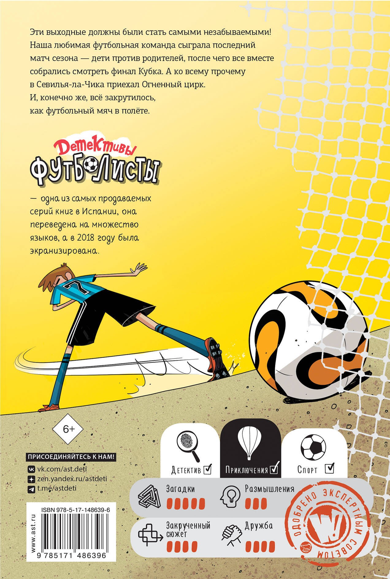 Очередная невероятная история из жизни школьной футбольной команды Сото Альто. На этот раз они играют последний матч сезона - дети против родителей, а после этого отправляются смотреть финал Кубка и попадают на представление Огненного цирка. И, конечно же, именно тут всё закручивается, как футбольный мяч в полёте.Роберто Сантьяго был сценаристом на телевидении, редактором и продюсером, а сейчас - один из самых успешных авторов Испании.Серия про детективов-футболистов стала настоящим культурным феноменом, это одни из самых продаваемых книг в Испании, они переведены на разные языки мира, а в 2018 году даже были экранизированы.