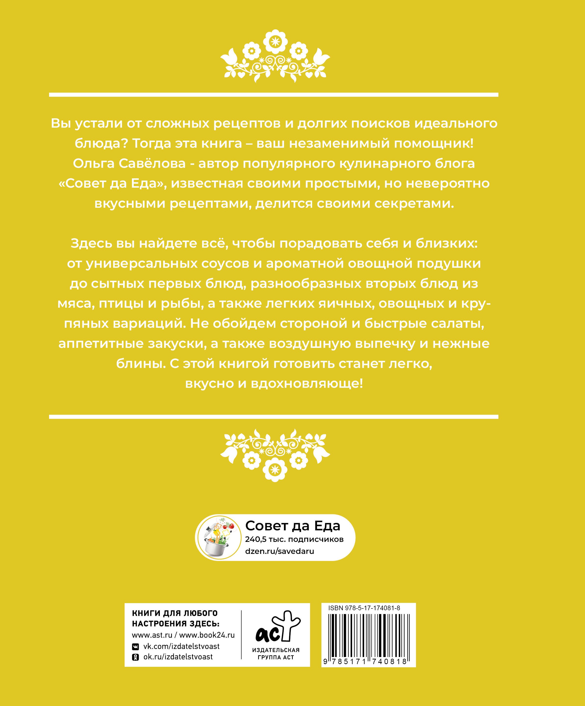 Хотите питаться вкусно и разнообразно? Ольга Савелова знает, как вам помочь! В этой книге вы найдете множество рецептов, которые готовятся быстро и легко: от быстрых салатов до ароматной выпечки. Готовьте с удовольствием, экономьте время и наслаждайтесь вкусной едой каждый день! Хотите вкусную еду за считанные минуты? Закажите книгу Ольги Савеловой “Совет да еда” прямо сейчас!